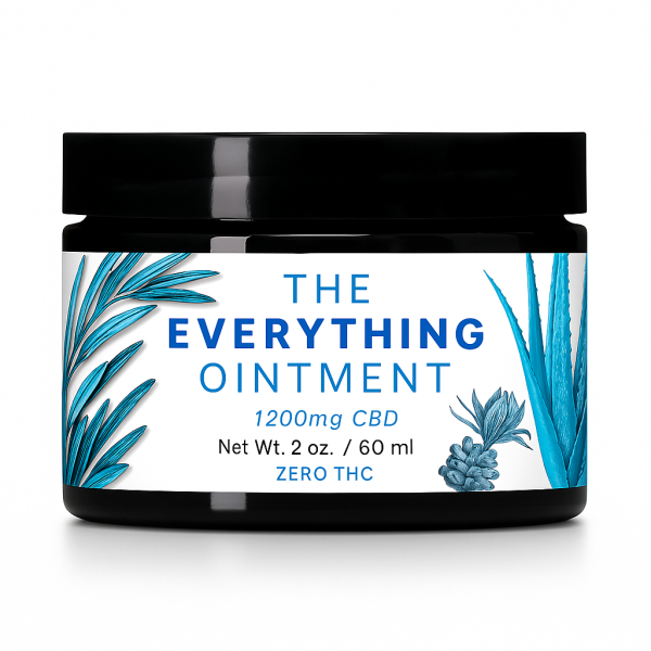 The Everything Ointment is a maximum strength – 1200mg CBD isolate – salve. This ointment relieves almost any skin condition or irritation.